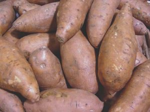 The nutritive value of the sweet potato is high and is a great way to increase vegetables in your diet. Sweet potatoes are a fat-free source of fiber, complex carbohydrates, Vitamins A and C, and iron, and are low in calories.
