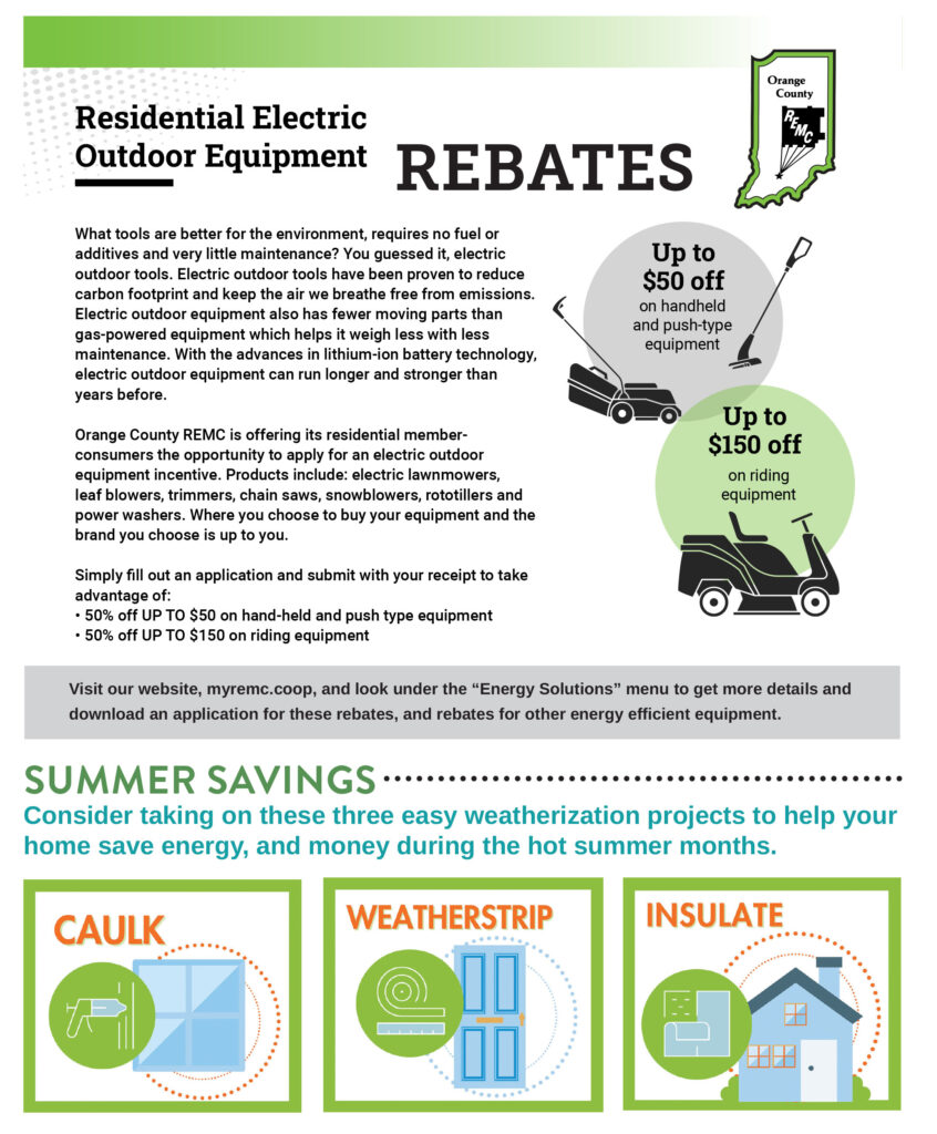 Take advantage of our electric equipment rebates By hhuffman Posted on Jun 05 2024 in Orange County REMC Related Stories A season of gratitude and community 2025 Member Appreciation Day Join us for a Christmas toy drive