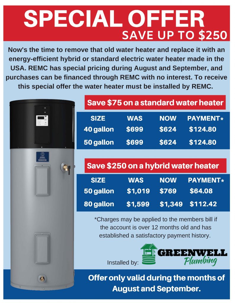 Take advantage of our water heater offers By Indiana Connection Posted on Sep 01 2019 in Clark County REMC Related Stories Hoosier Energy advances pollinator habitat conservation efforts Providing reliable service while staying financially strong Donate to our food drive