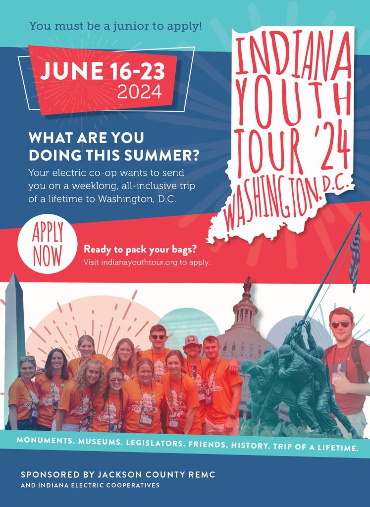 The time is now to apply for Youth Tour By Indiana Connection Posted on Jan 20 2024 in Jackson County REMC Related Stories Hoosier Energy advances pollinator habitat conservation efforts Protect what matters most with Jackson County REMC Community Day 2025: Jackson County REMC serves the Scott County Clearinghouse