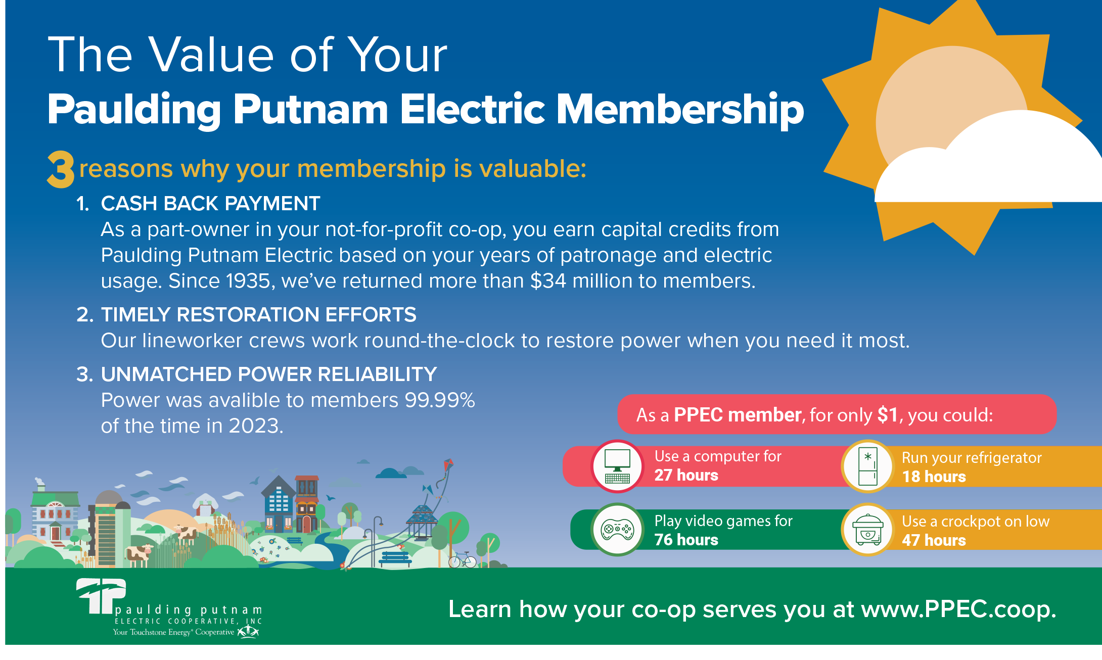 The value of your PPEC membership By hhuffman Posted on Mar 18 2024 in Paulding Putnam Related Stories Hunt what’s in season Fiber internet is coming to Village of Grover Hill The POWER of participation: Why cooperative members should run for their board of trustees