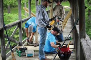 Tipmont provided skilled labor to redeck the longest walking covered bridge east of the Mississippi River. By Ellie Schuler Posted on Jun 27 2016 in Tipmont provided skilled labor to redeck the longest walking covered bridge east of the Mississippi River.