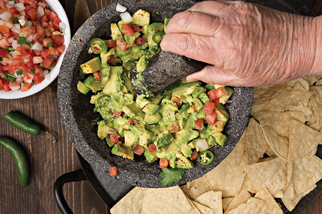 - Molcajete: a sauce bowl also used to grind all ingredients in salsa (A liquadora, or blender, has taken over some of the molcajete’s work in some modern Mexican kitchens.)