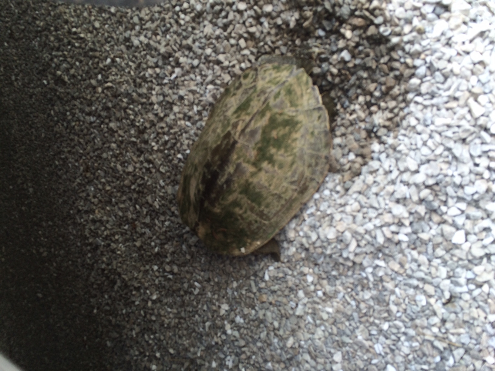 There to my amazement was a 10 inch false map turtle, Graptemys pseudogeographica, busily trying to excavate through the limestone driveway in the wheel rut made by my truck tire! If I hadn’t seen the turtle and moved the truck, it would have been all over, and not in a good way.