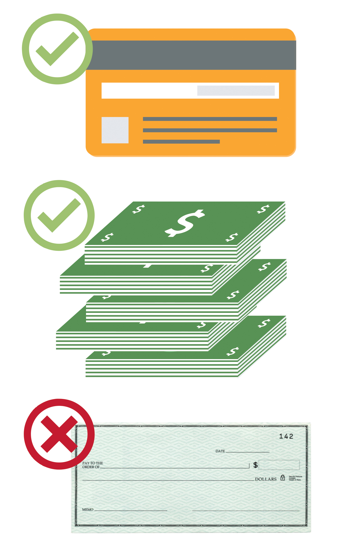 If your account has been disconnected for non-payment, a check will no longer be accepted to restore service. However, you can still use cash, debit, or a credit card with any of our available payment methods to complete payment.