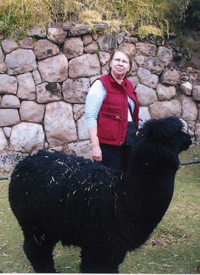 Incan ruins stand out against the misty mountains of Peru. While it was scenes like this that attracted Jane Johnson to Peru, she said the indelible memories were created by getting out and immersing herself in the culture and sharing human experiences with the people. Below, she poses with an alpaca and visited a school.