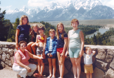 Photos: The “Legg” women, top, at Snake River in the Grand Tetons during their 1977 road trip. “Grammy” is at far left in front; Pauline Alexander, who submitted the story, is the adult on the right. Above left, the family prays during their “Sunday school” amid “God’s beautiful mountains.”