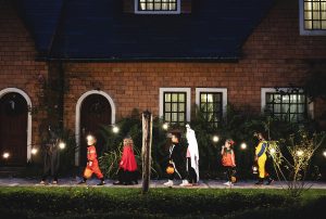 Group of kids with Halloween costumes walking to trick or treating By hhuffman Posted on Oct 19 2022 in