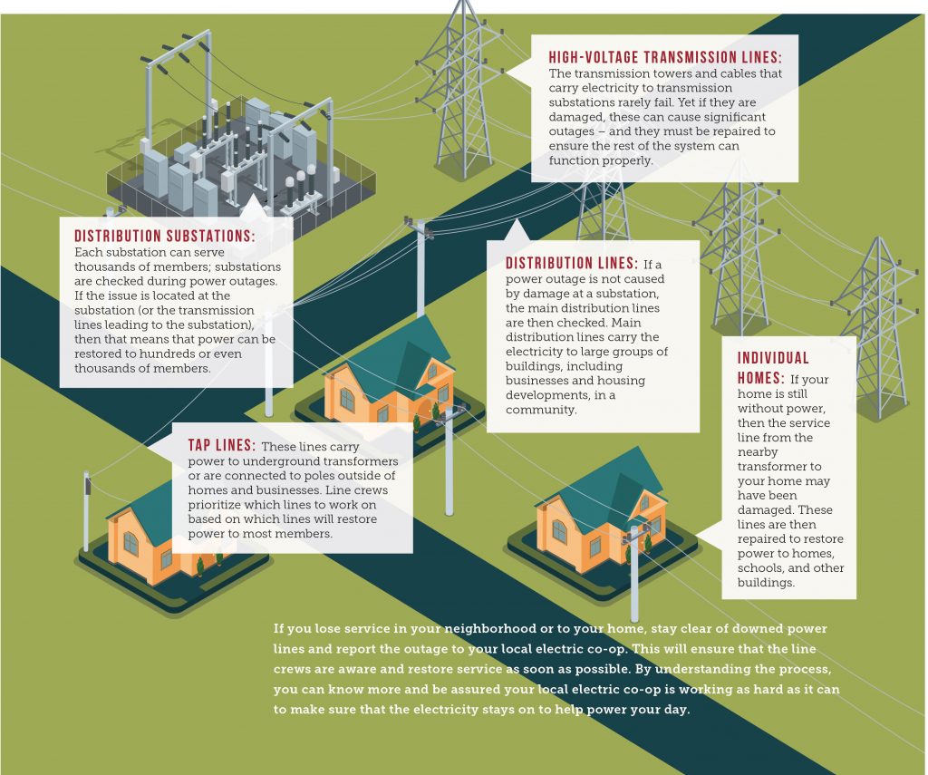 When the power goes out, we expect it to be restored within a few hours. But when a major storm or natural disaster causes widespread damage, extended outages may result. Our line crews work long, hard hours to restore service safely to the greatest number of consumers in the shortest time possible. Here’s what’s going on if you find yourself in the dark: