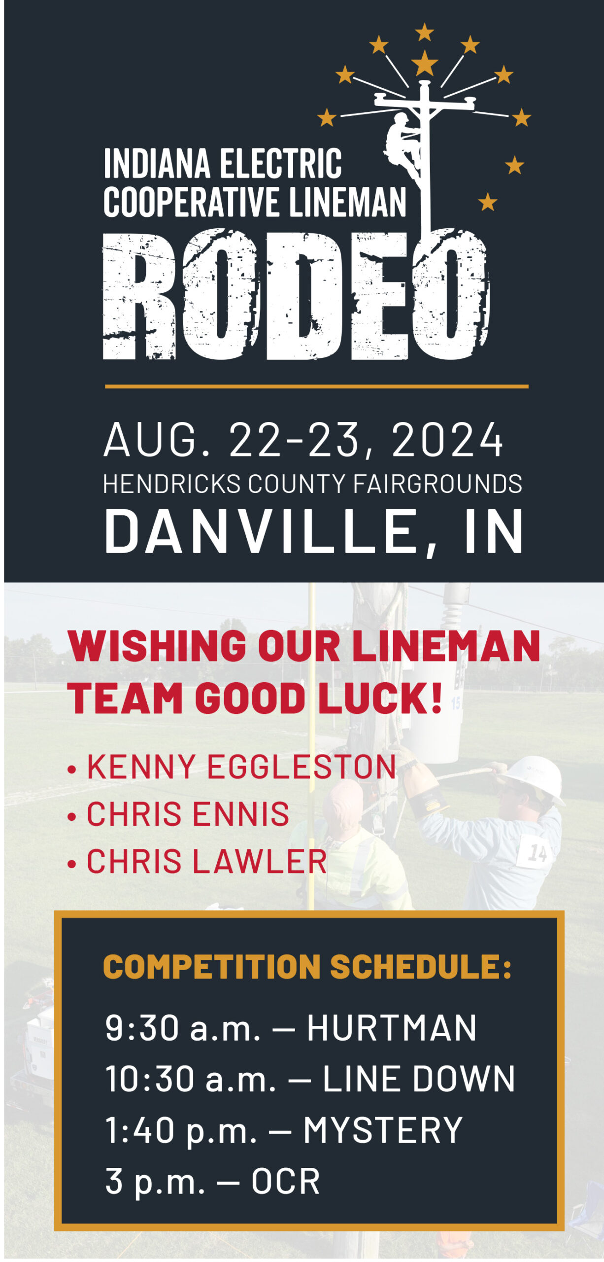 Wishing our linemen good luck at the Lineman Rodeo! By Indiana Connection Posted on Aug 08 2024 in Marshall County REMC Related Stories Reflecting on 2025 and looking ahead Be a stellar member: Support our communities through Operation Round up Marshall County REMC 2025 recap