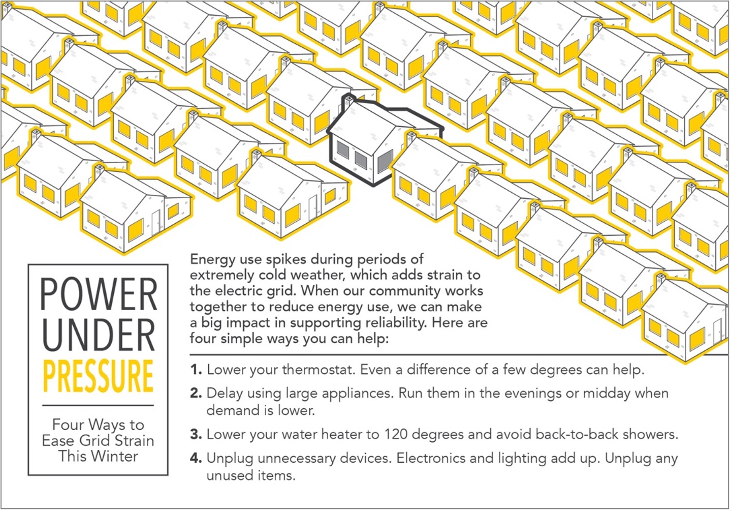 You can help by taking simple actions during periods of high electricity use, especially on the coldest days of winter: