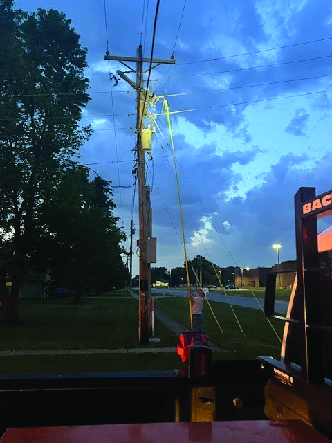 The first outage was in the Asphaltum area with a primary wire touching the neutral that caused a short. This required a lineman to repair the primary wire and then to reset a device that detects faults on the line. On to Valley View subdivision, where a branch was on the line. The branch was cleared, and the fuse was replaced on the transformer. We proceeded to the Francesville area, where a wire had come loose that fed a fuse to an underground service. This wire was reattached, concluding our portion of the power restoration.