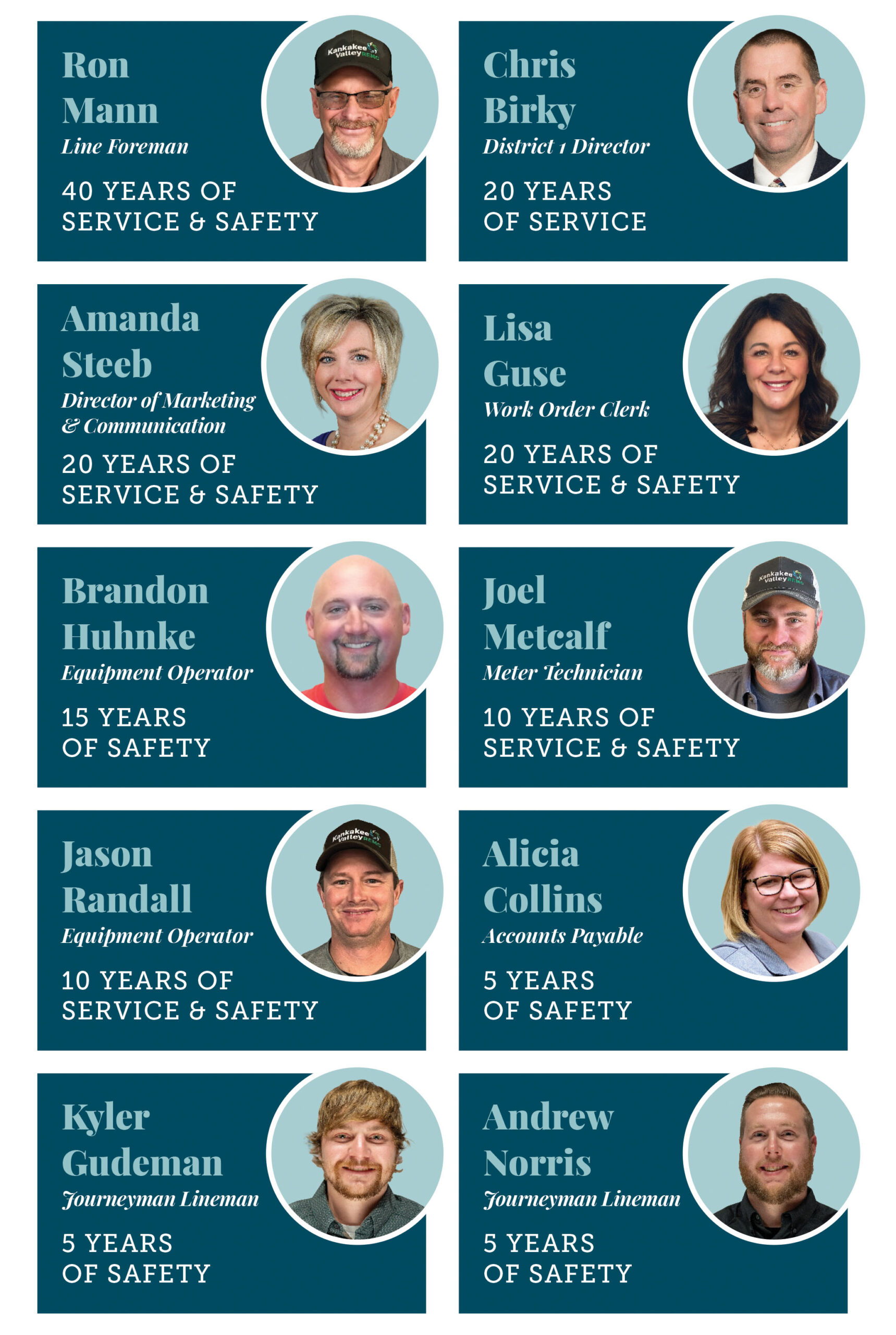 Kankakee Valley REMC is pleased to recognize its employees and directors for milestone years of safety and service. We greatly appreciate their dedication not only to their careers but also to providing exemplary service to the cooperative’s member-consumers.