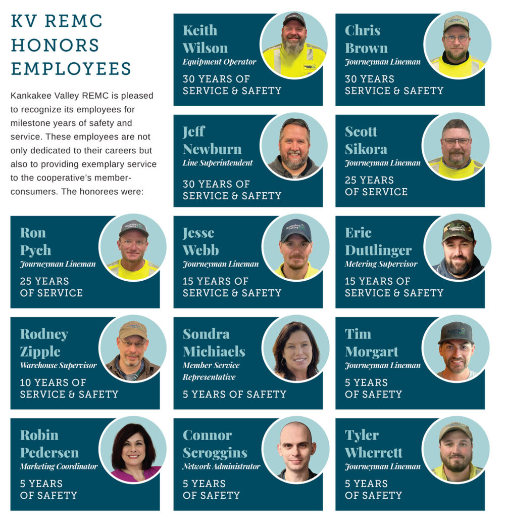 Years of service and safety By Indiana Connection Posted on Feb 07 2026 in Kankakee Valley REMC Related Stories Planning for growing energy needs Operation Round Up: A year-round commitment Congratulations to Kristi, Cody, and Jason