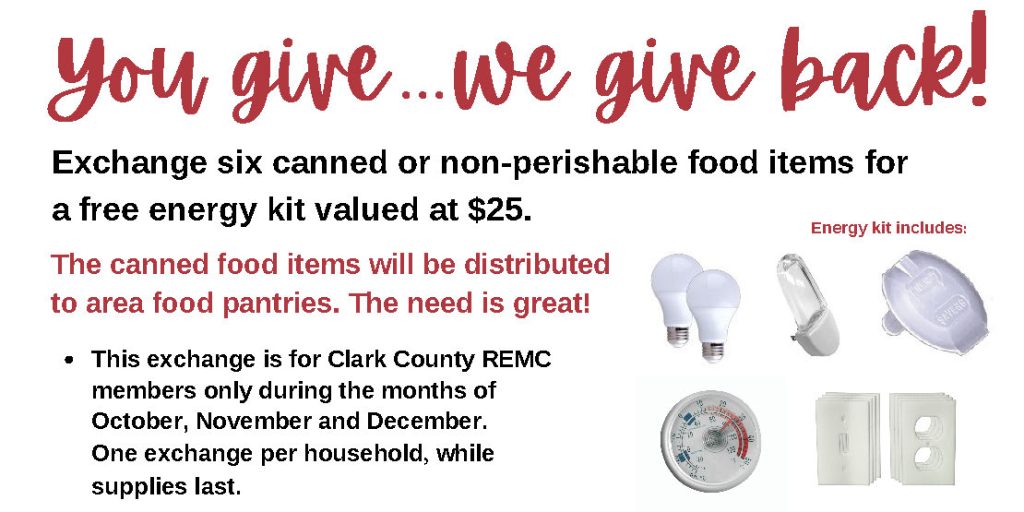 You give … we give back! By Indiana Connection Posted on Oct 22 2023 in Clark County REMC Related Stories Hoosier Energy advances pollinator habitat conservation efforts Providing reliable service while staying financially strong Donate to our food drive