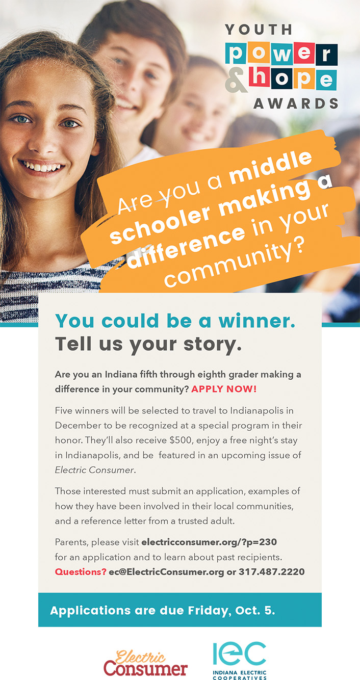 Youth Power & Hope Awards By Indiana Connection Posted on Aug 24 2018 in Marshall County REMC Related Stories Reflecting on 2025 and looking ahead Be a stellar member: Support our communities through Operation Round up Marshall County REMC 2025 recap