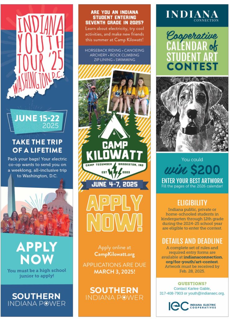 Youth programs available for local students By Indiana Connection Posted on Nov 15 2024 in Southern Indiana Power Related Stories Hoosier Energy advances pollinator habitat conservation efforts Capital credit allocations for 2000 to be retired and paid out to members Supporting our community at Perry Central