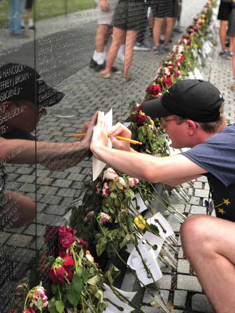 Youth Tour students from around Indiana pose in front of the United States Marine Corps War Memorial. Southern Indiana Power sent two students on the trip — Kaylee Burden and Kaitlyn Sturgeon.Arlington National Cemetery is a popular stop during Youth Tour. The Vietnam Veterans Memorial provides an interactive experience for visitors, including Youth Tour students for whom the war is long ago history. Making rubbings of names etched on the wall allows visitors to remember and honor fallen war heroes. The Washington Monument is just one of the iconic sights in our nation’s capital.