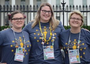 Miami-Cass REMC Youth Tour delegates Avery Heishman, Kayla Kraning and Madison Vance pose in front of the White House.